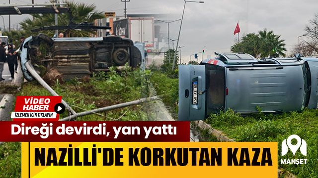 Edinilen bilgiye göre, Aydın’dan Nazilli istikametine doğru seyir halinde olan E.K. idaresindeki 09 KV 853 plakalı hafif ticari araç, İsabeyli kavşağına yaklaştı. Yağış nedeniyle kayganlaşan yolda direksiyon hakimiyetini kaybeden sürücü, aracı yolda tutmayı başaramadı.