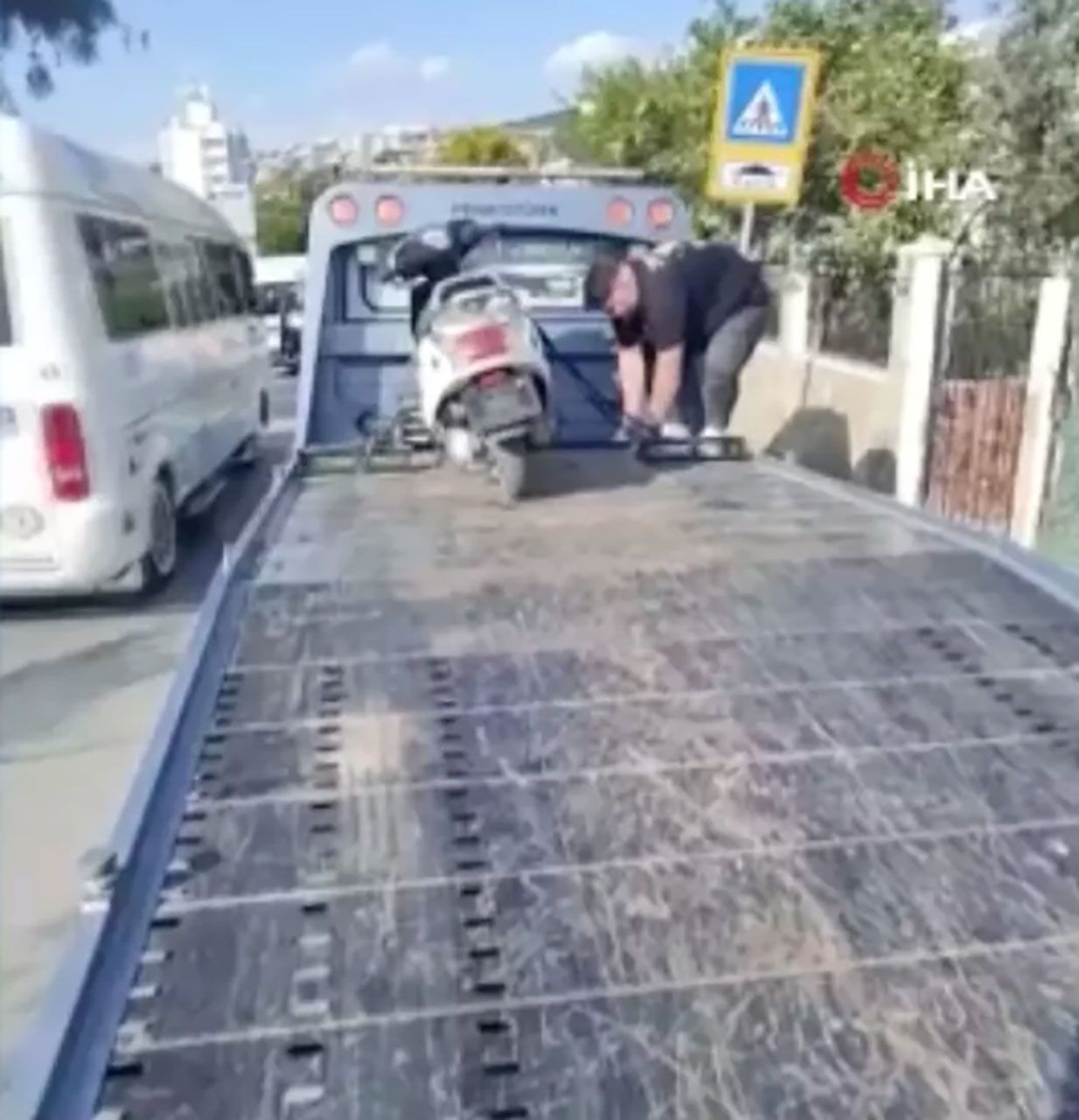 Trafik ekipleri tarafından M.Y.’ye; dur ihtarına uymamaktan 200 bin TL, plakasız araç kullanmaktan 46 bin TL, ehliyetsiz araç kullanmaktan 40 bin TL, kask takmamaktan 2 bin 500 TL, trafiği tehlikeye düşürecek şekilde şerit değiştirmekten 90 bin TL ve yaralanmalı kazaya neden olup olay yerini terk etmekten 46 bin TL olmak üzere toplam 424 bin 500 TL ceza yazıldı.