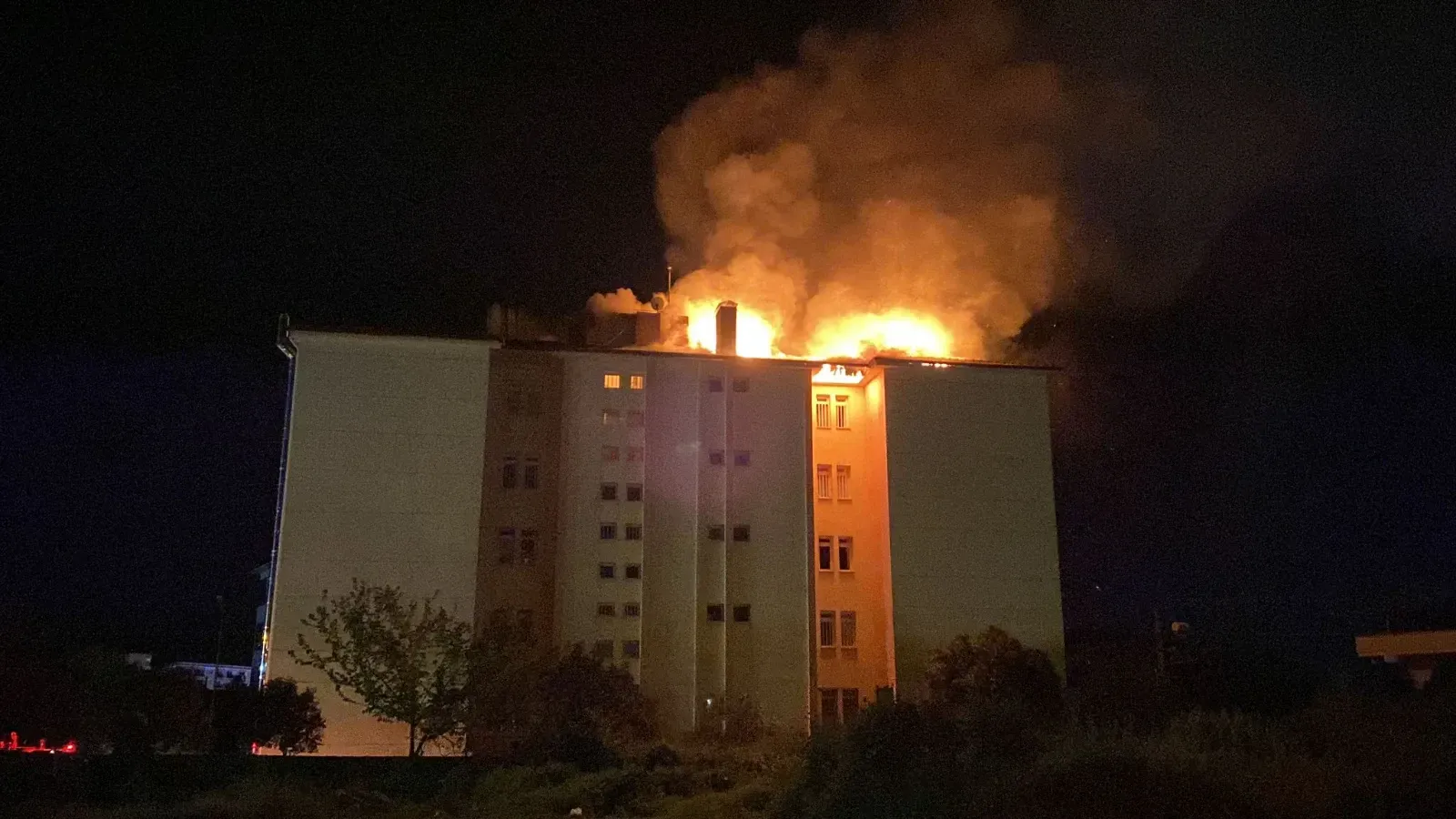 Şu an itibarıyla yurdun çatısının alev alev yandığı bildirildi.